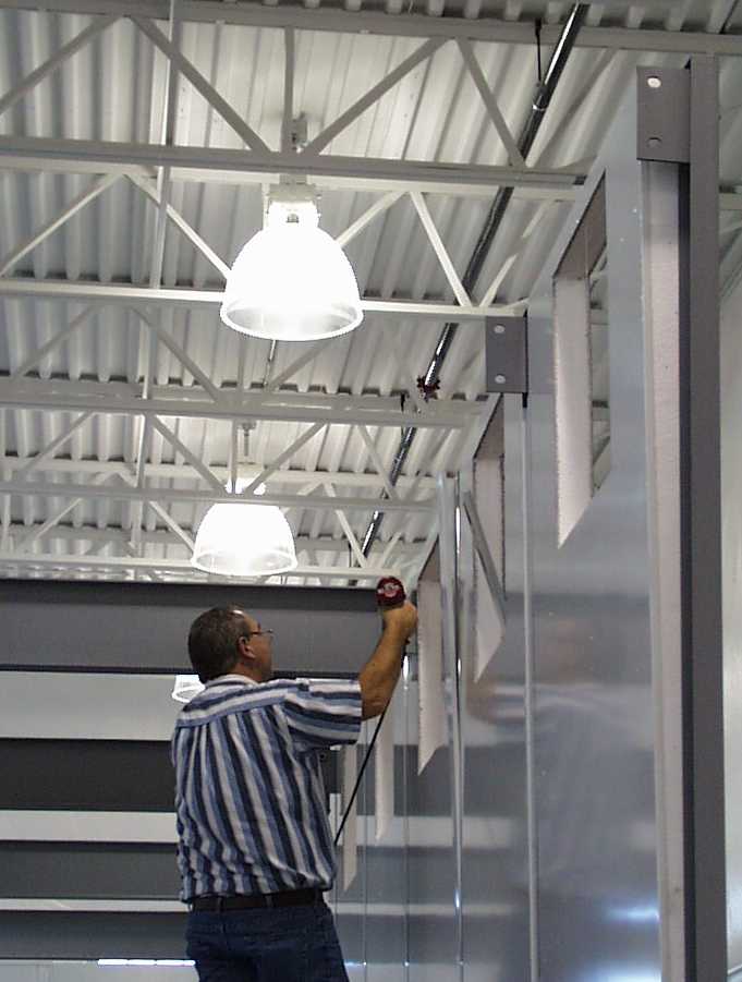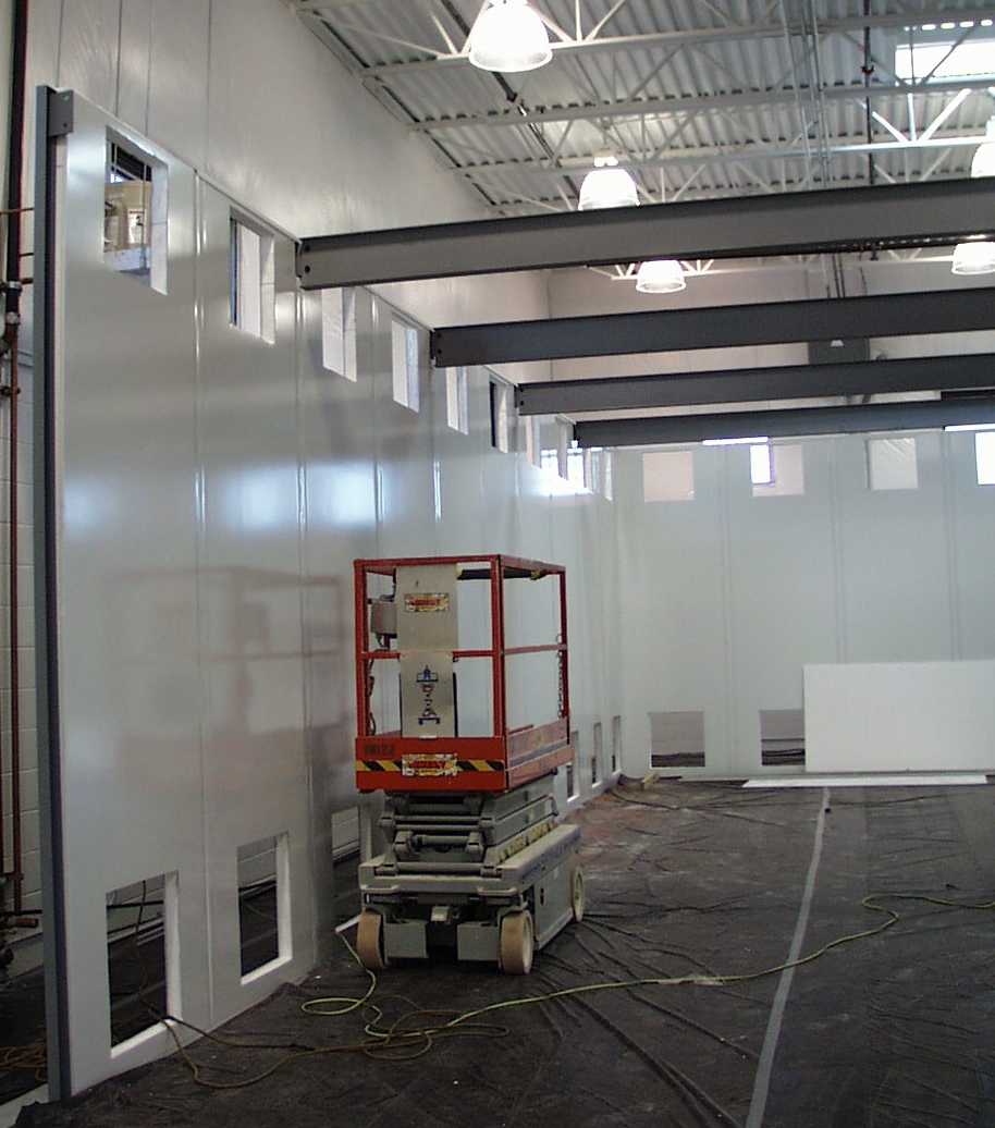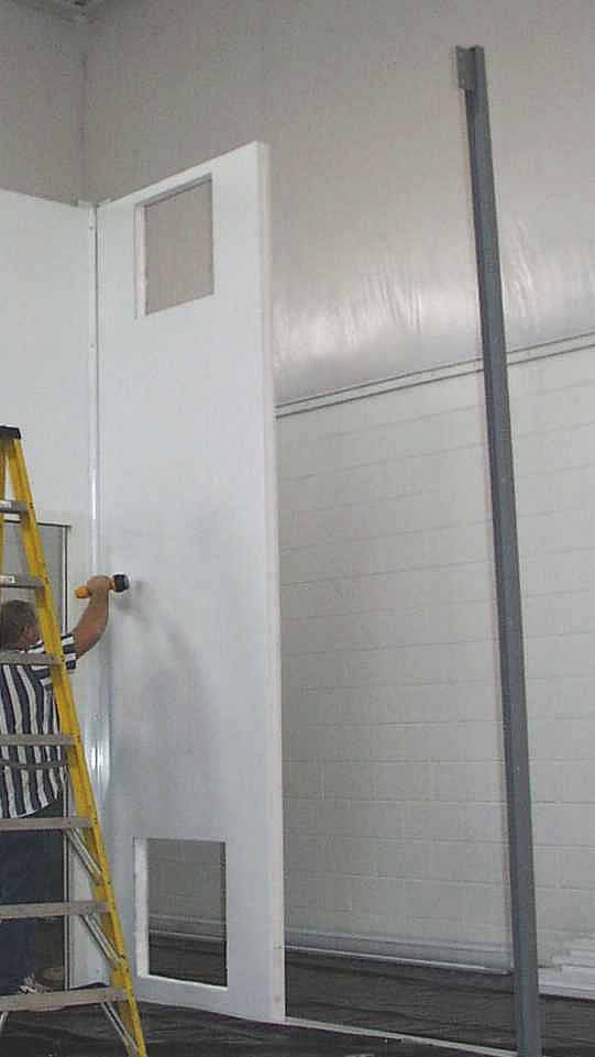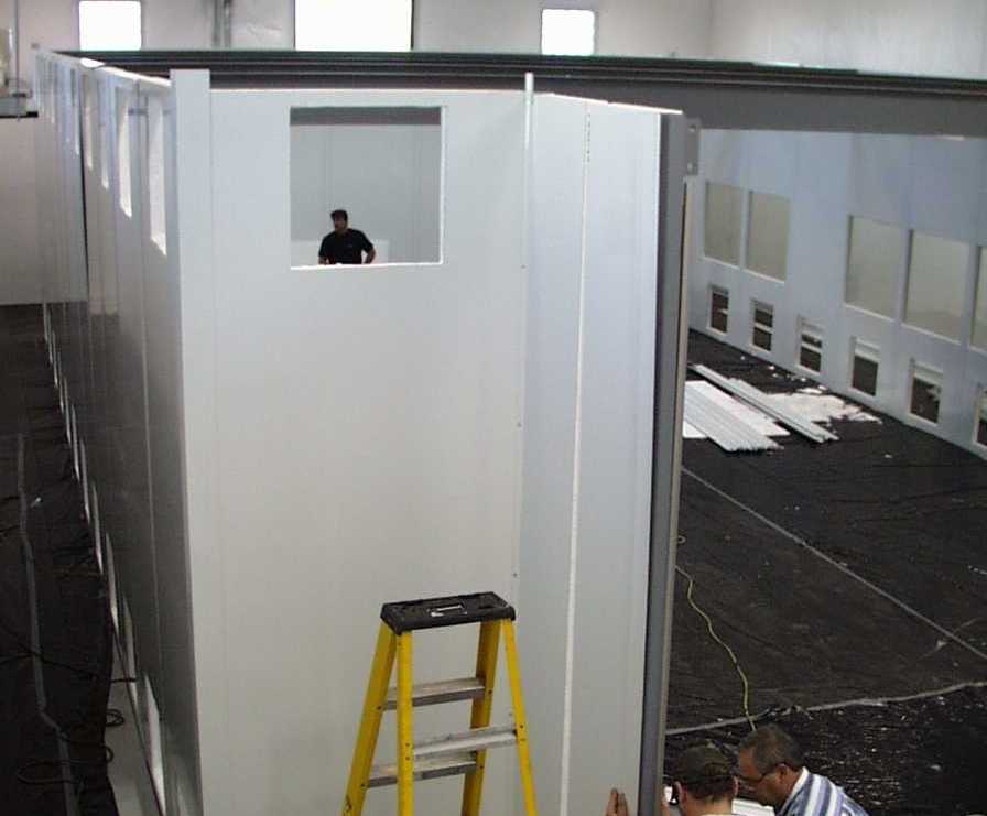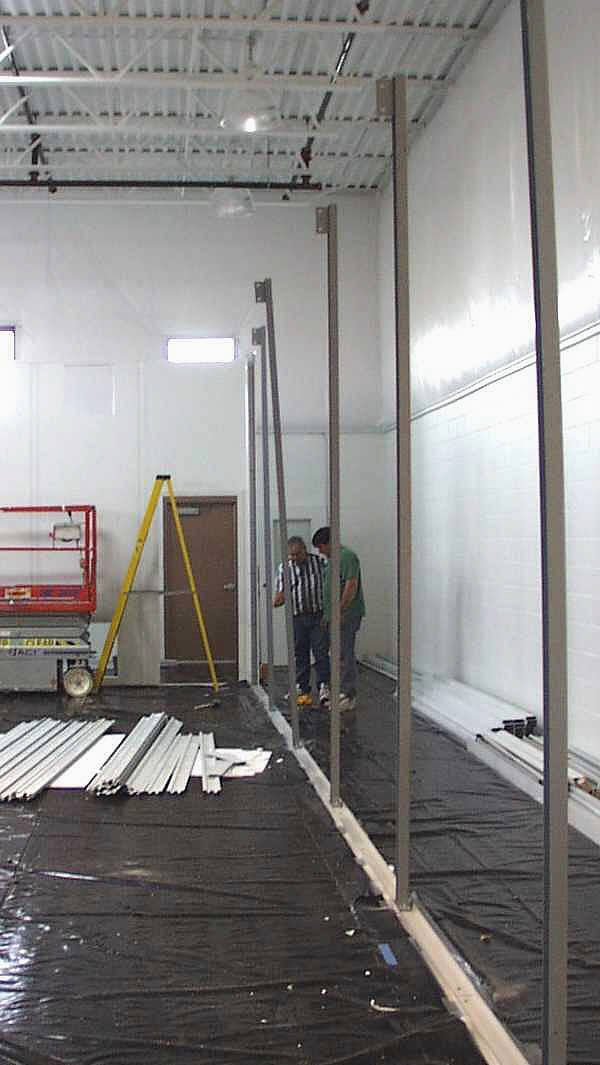 Prefabrication of wall panels, windows and entry ways enables the Hardwall cleanroom to be easily modified, expanded, or relocated. Our standard Hardwall panels are 3” thick, with a center core of polystyrene covered on both sides with white painted steel. Panels are attached to one another via a two-piece structural post design. This implementation allows for a non-progressive paneling system, which simply means, wall sections can be removed and/or replaced without disturbing the adjacent structure. The two-piece posts systems are used to conceal electrical wiring and cabling as well as housing structural inserts.