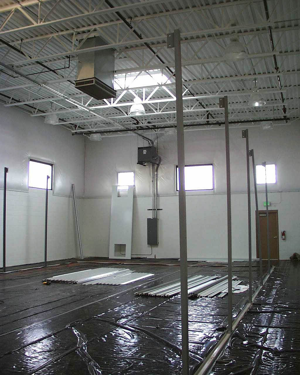 Unless specified otherwise, roof decking, I-Beams, and support posts will be designed for 20-25 lbs. (per square foot) loads. Loads of up to 60 lbs. and greater are also available and can also be designed as an integral part of a mezzanine. Support posts and I-Beams will vary in size based on span and load-bearing requirements. Upon request, seismic bracing and stamped drawings are also available.