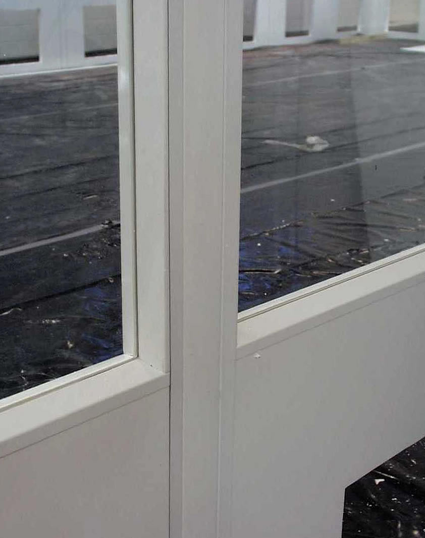 Standard single entry doors are painted steel, sealed with a fully gasketed jamb and come with safety viewing windows. Doors are field adjustable and leveled to insure proper operation. Like many of our Hardwall cleanroom components, doors and entry ways are available in a variety of styles, sizes, and finishes. 3/16” tempered safety glass windows, which allow a clear view in or out of the cleanroom are available in standard, full view, and customizable sizes. Modular Cleanrooms, Inc. also offers an assortment of glass material options.