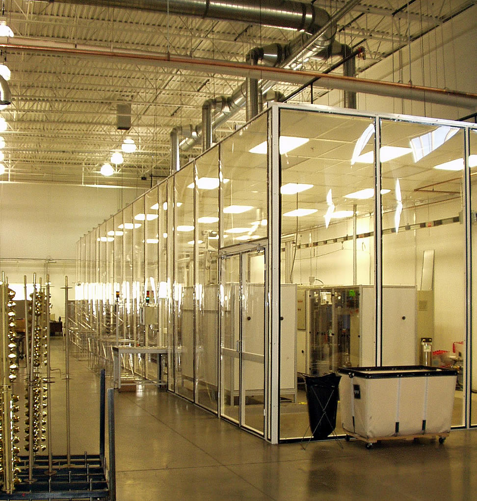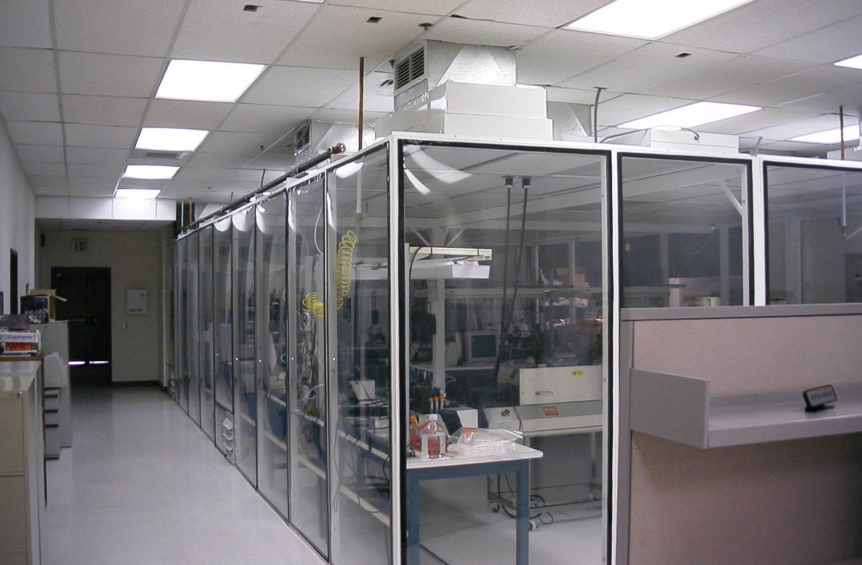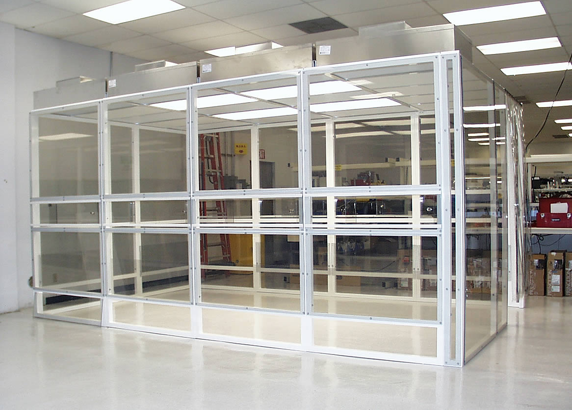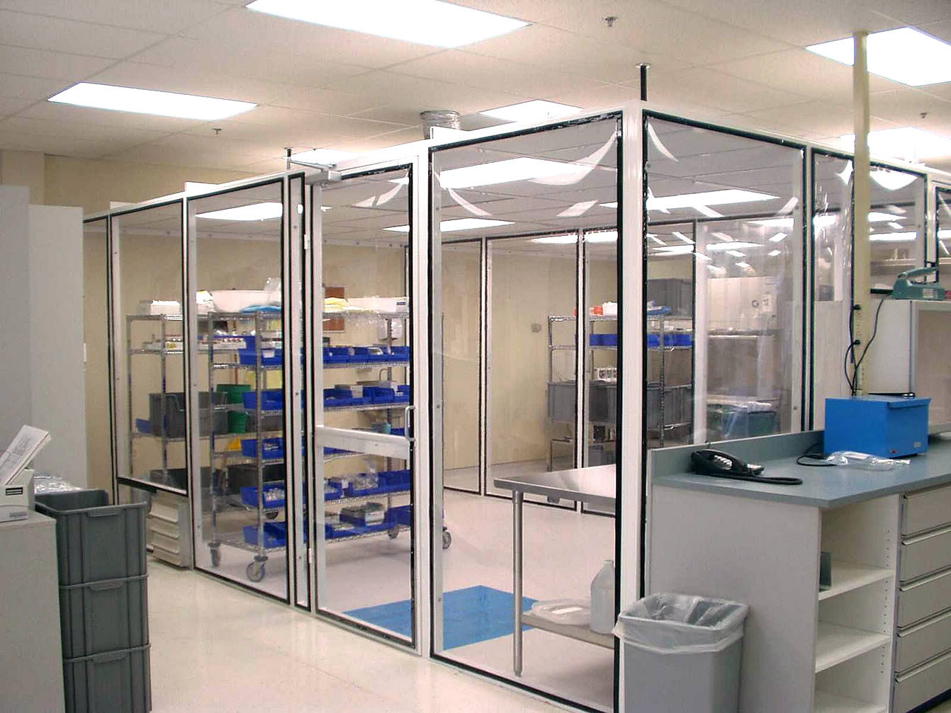 Existing ceiling grid, if in good condition, is also commonly used. All steel components are coated with white powder coat paint for durability (other colors available upon request as a special order). A major advantage to the Micro-Clean softwall cleanroom is its ability to be enlarged or reduced without having to tear the entire room down. Wall panels and ceiling grids can easily be added or removed as future needs dictate. Rooms may come as a totally freestanding structure or can be used in combination with existing wall(s). Compare the ease of erecting these rooms to the disruption and contamination generated during installation of sheet rock walls as well as downtime and potential revenue loss.