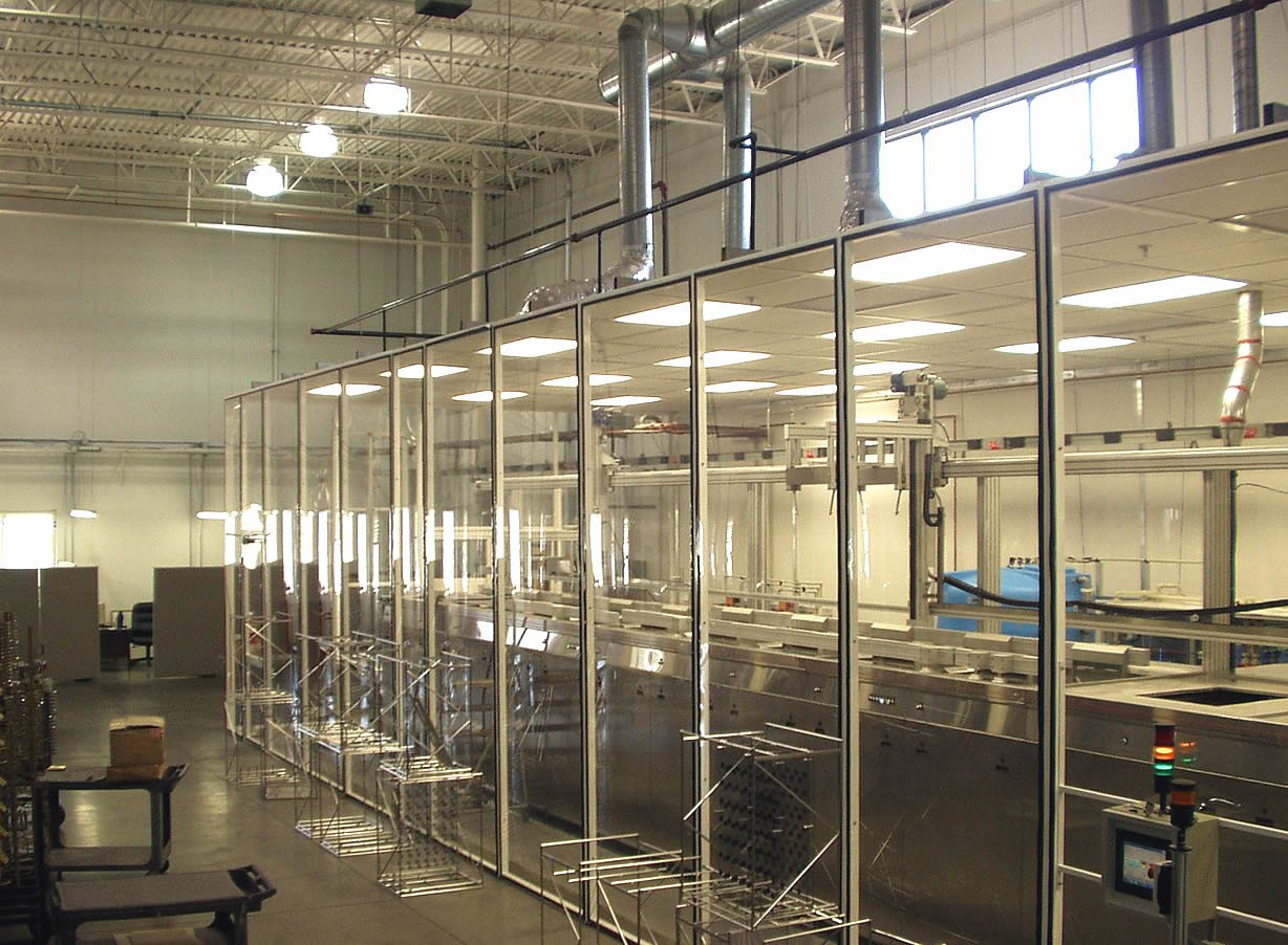 The Micro-Clean is constructed with a minimum 16 gauge, 2″ x 2″ tubular steel panel walls, flexible softwall or rigid hardwall plastic sheets (other materials also available) which can be easily erected and/or disassembled. An auto-closing door is standard, and has an optional 3-gang wall switch. There are a number of ceiling choices offered on the Micro-Clean: